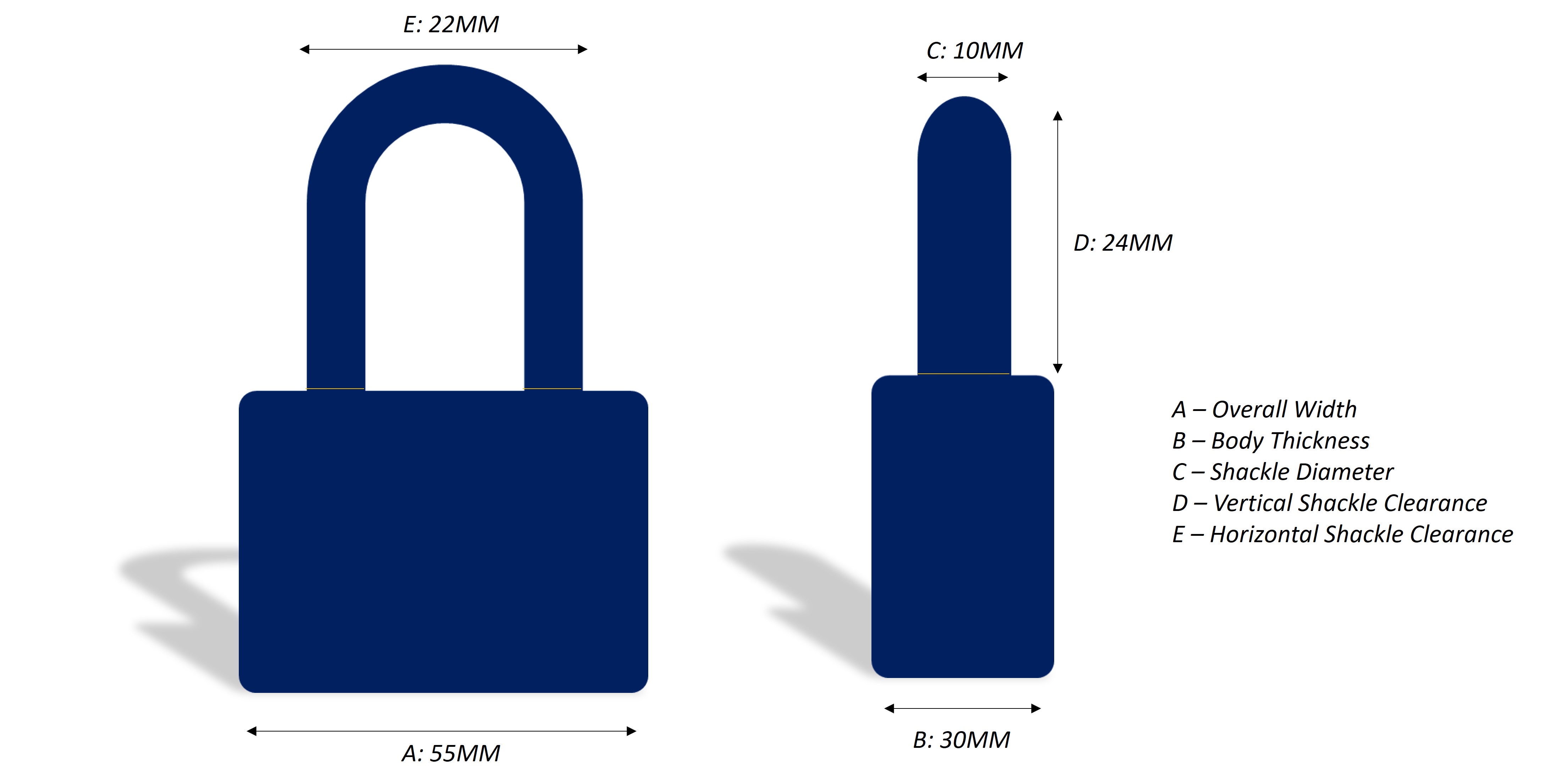 - Vertical shackle clearance - 26mm